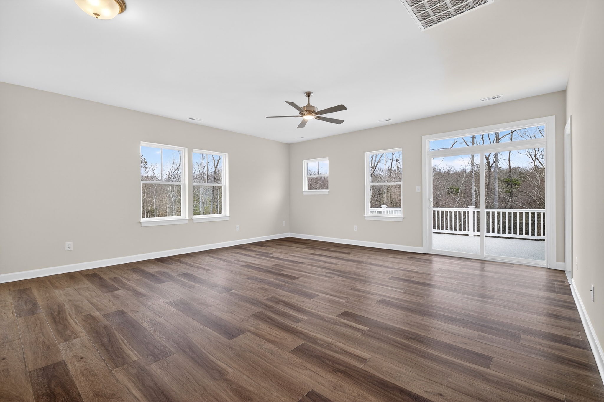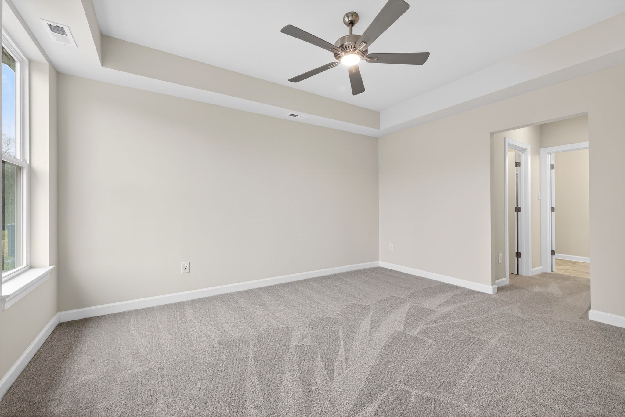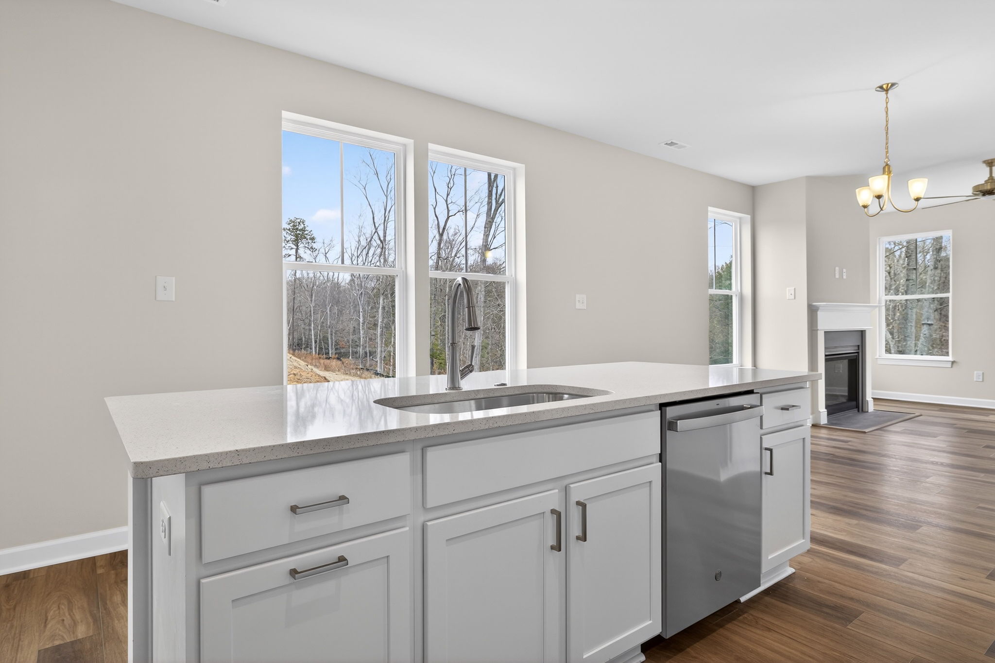 Beyond the kitchen, the expansive great room beckons, filled with natural light pouring in from the large windows. This space is perfect for cozy movie nights, lively game days, and quiet evenings by the fire. To the right, the luxurious primary suite offers a serene retreat. With its spacious bedroom, walk-in closet, and elegant en-suite bathroom, this suite is your personal sanctuary, perfect for unwinding after a busy day.