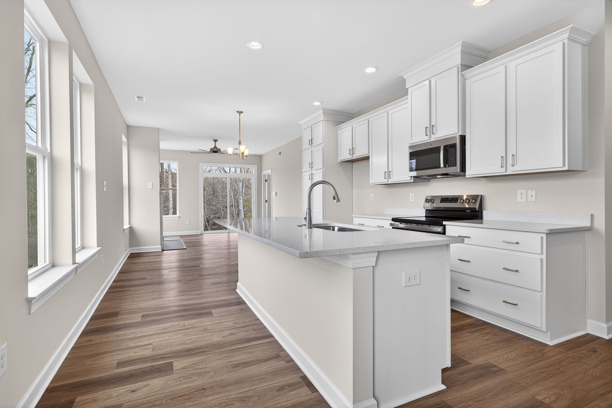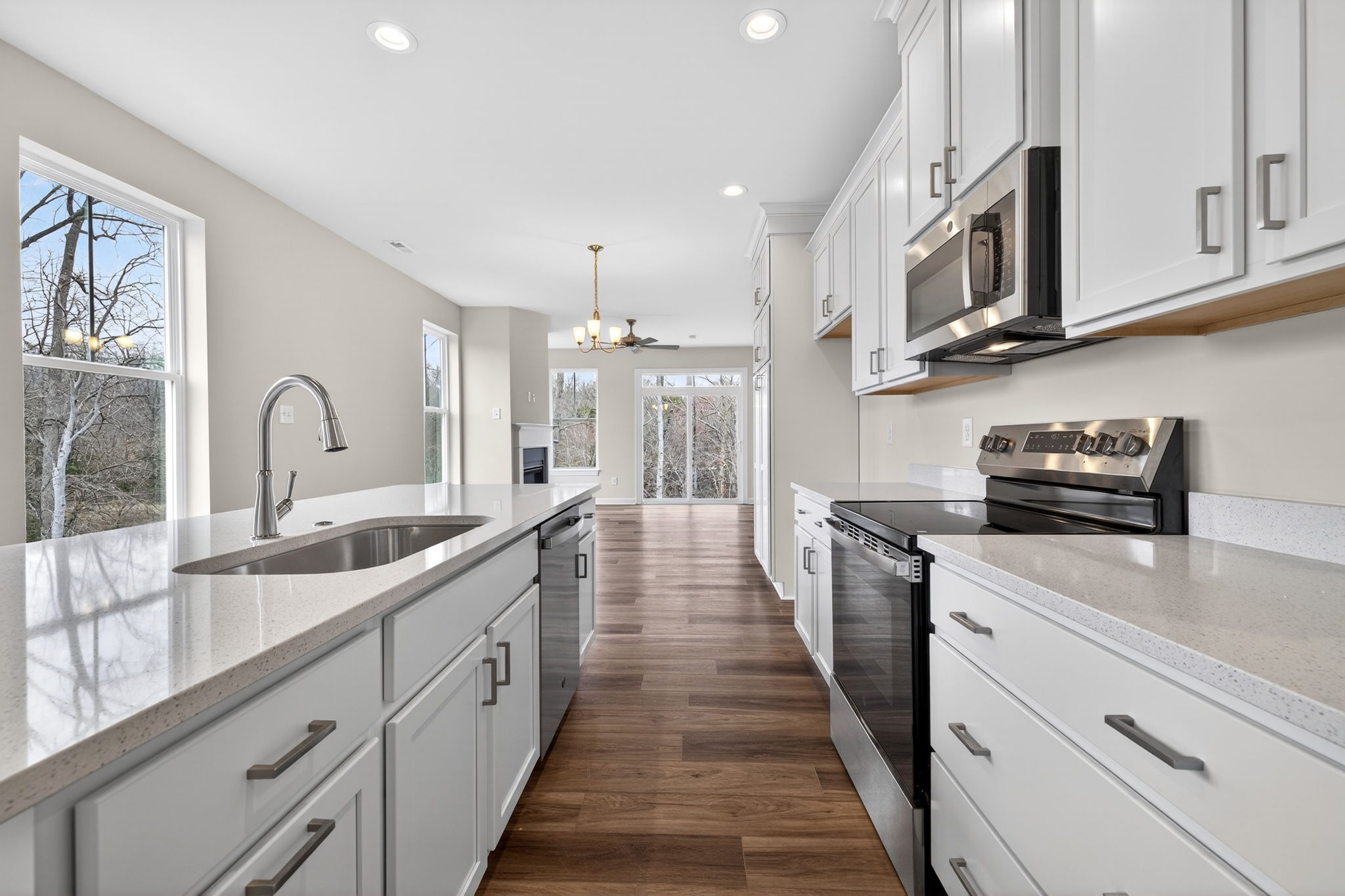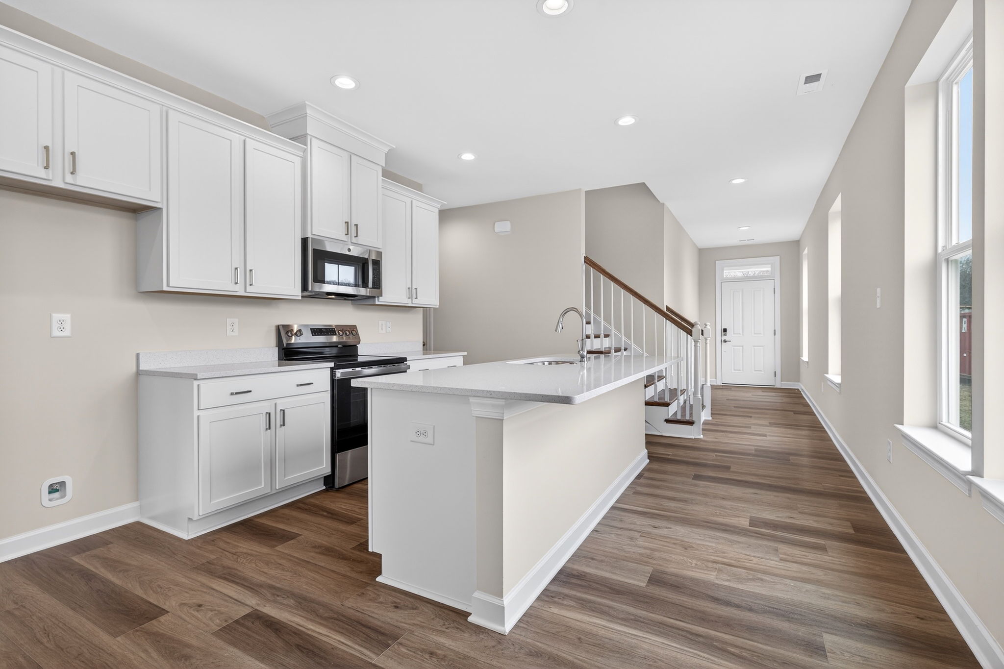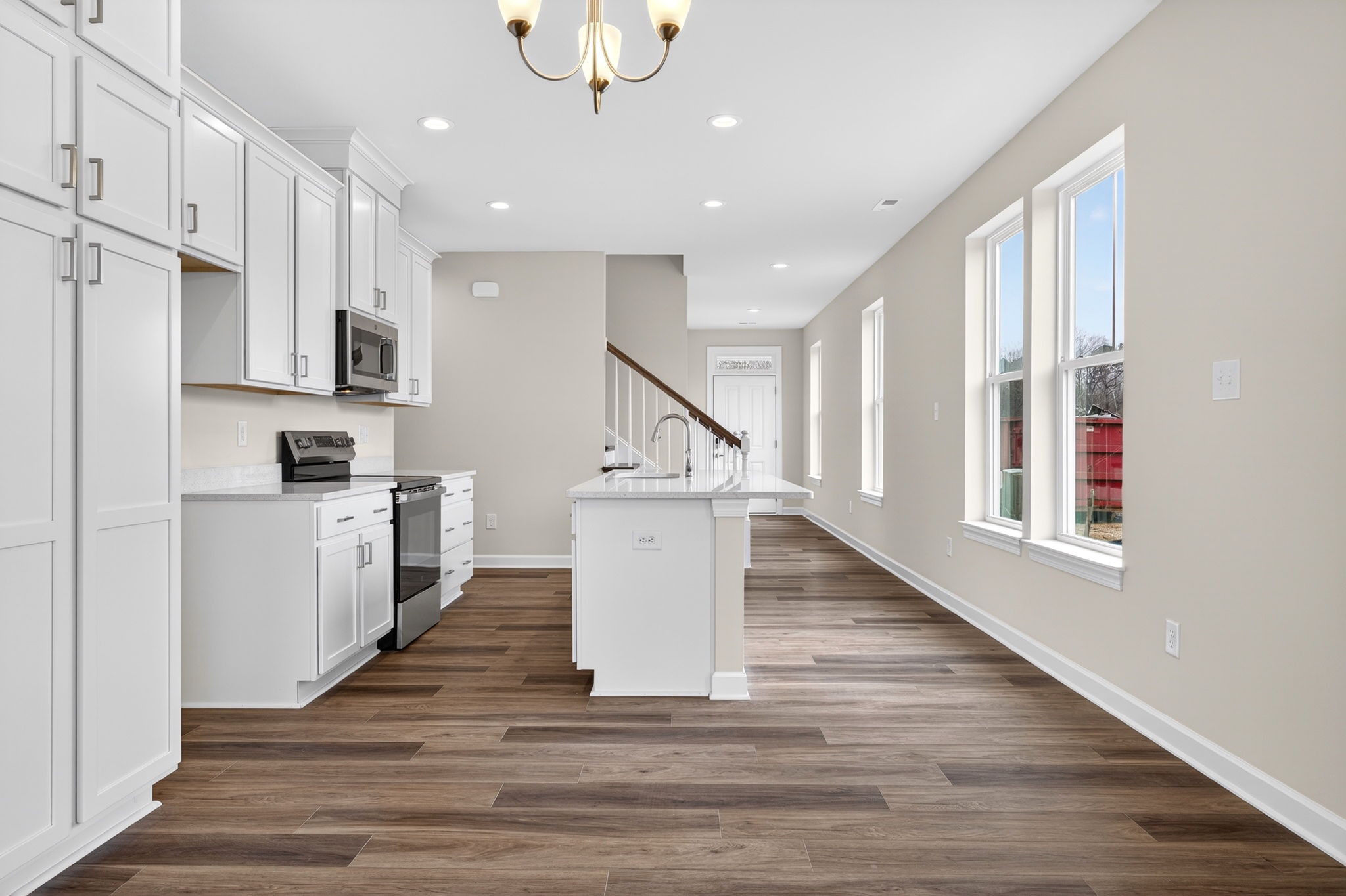 As you step into The Thomas, you are greeted by a welcoming foyer that immediately feels like home. The open layout seamlessly guides you into the heart of the house—the stunning kitchen. With its sleek countertops, state-of-the-art appliances, and ample storage, this kitchen is more than just a cooking space; it’s the setting for family breakfasts, holiday feasts, and late-night conversations over a cup of tea.
