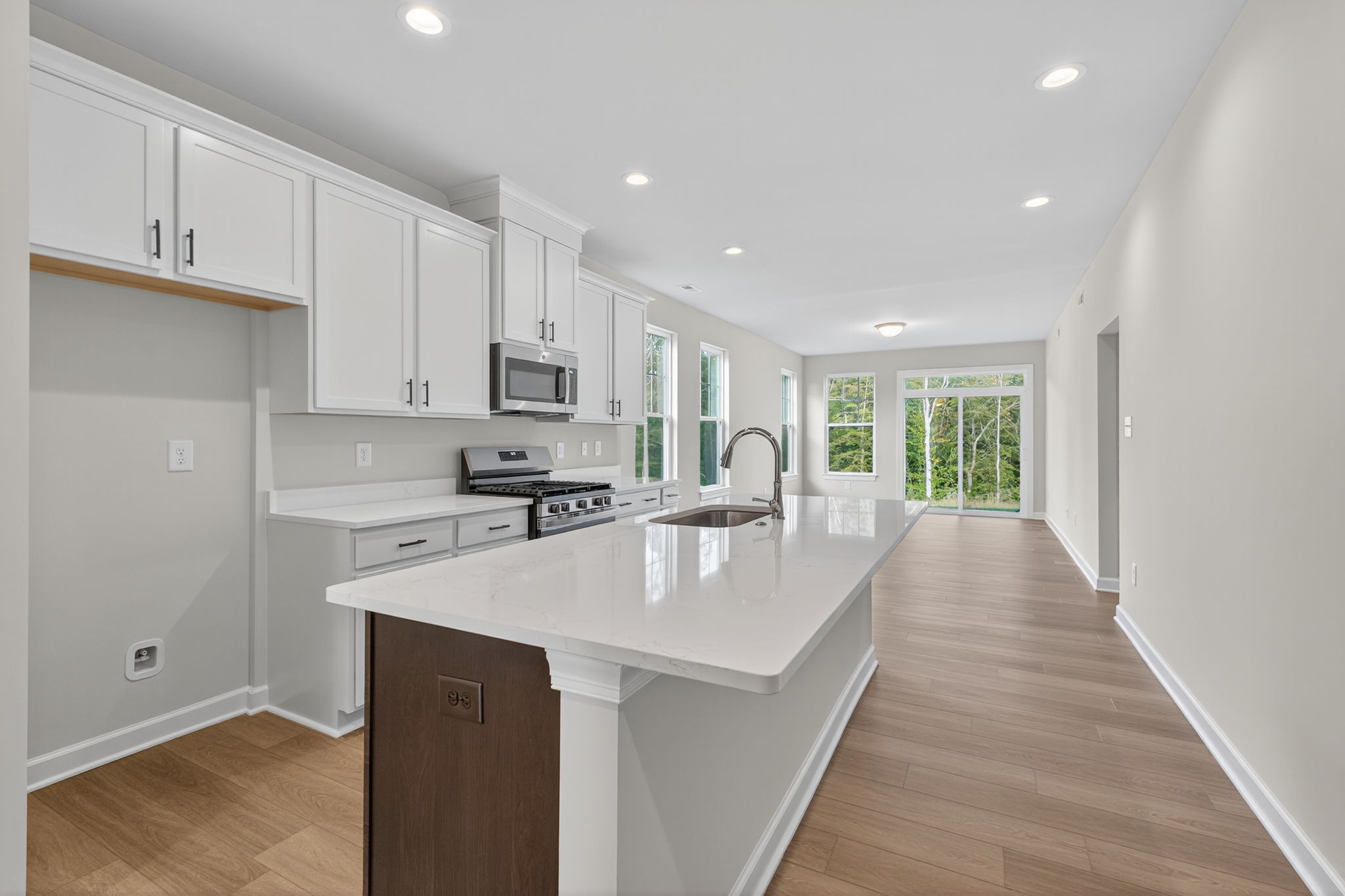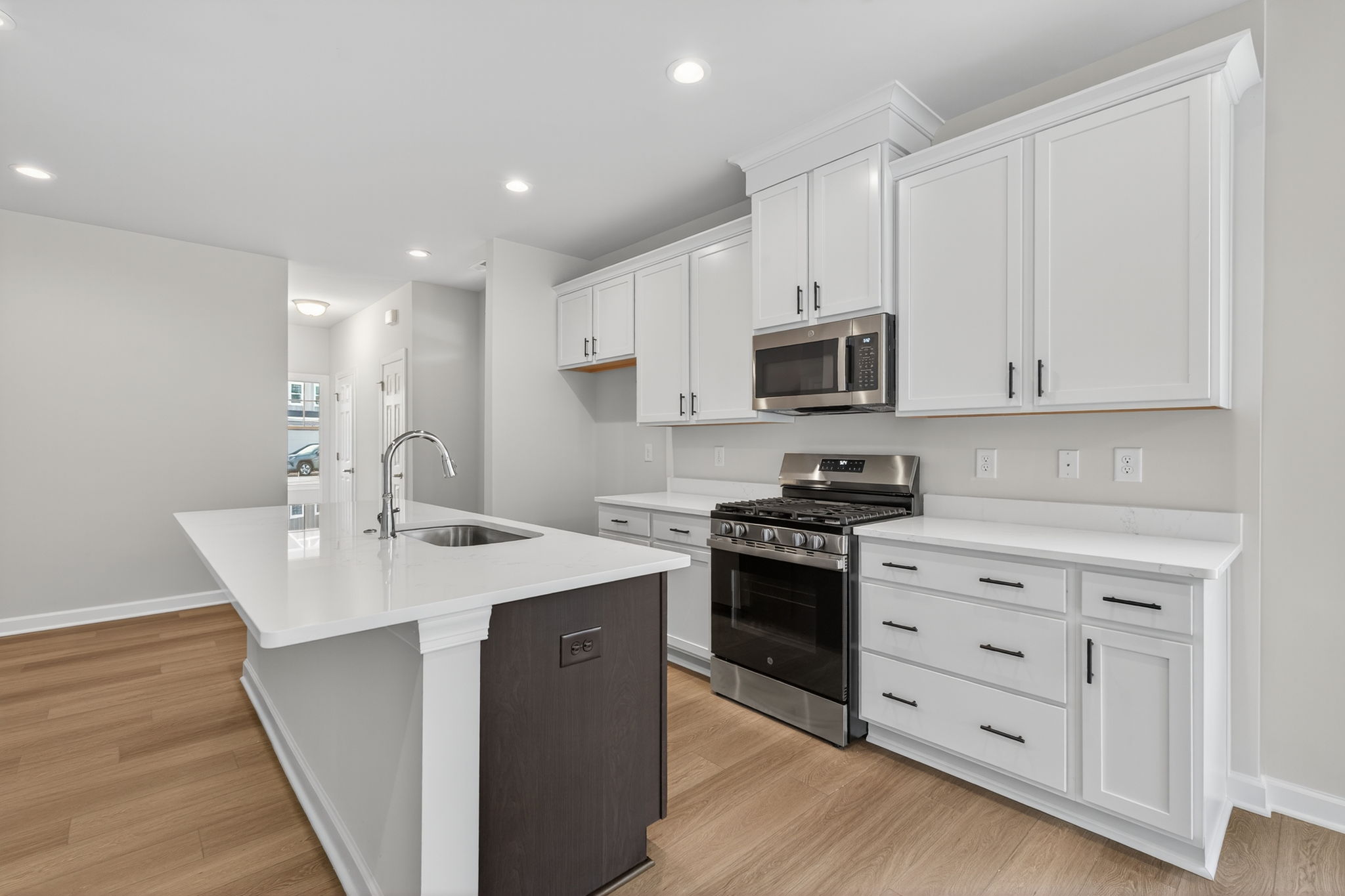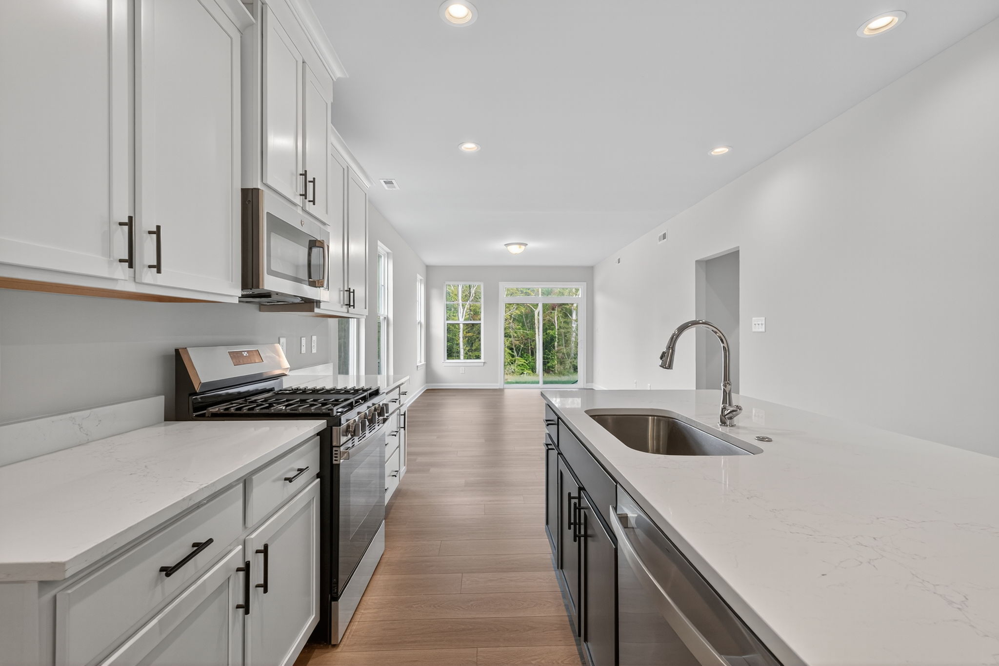 As you enter the front door, you’re greeted by a chef’s dream, with sleek countertops, top-of-the-line appliances, and ample cabinet space. Imagine preparing a delicious meal while your loved ones chat at the island, the aroma of fresh herbs and spices filling the air. As you step further into the home, an open and inviting great room awaits with large windows bathing the space in natural light. This is where your family will gather for cozy movie nights, and where friends will gather for celebrations, their laughter echoing against the high ceilings.